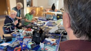Einmal im Monat haben Bürgerinnen und Bürger die Möglichkeit, ihre defekten Geräte mitzubringen und gemeinsam mit erfahrenen Tüftlerinnen und Tüftlern zu reparieren. Das spart Geld, vermeidet Müll, schont die Umwelt und bringt Menschen zusammen – und das auch noch bei Café und Kuchen.